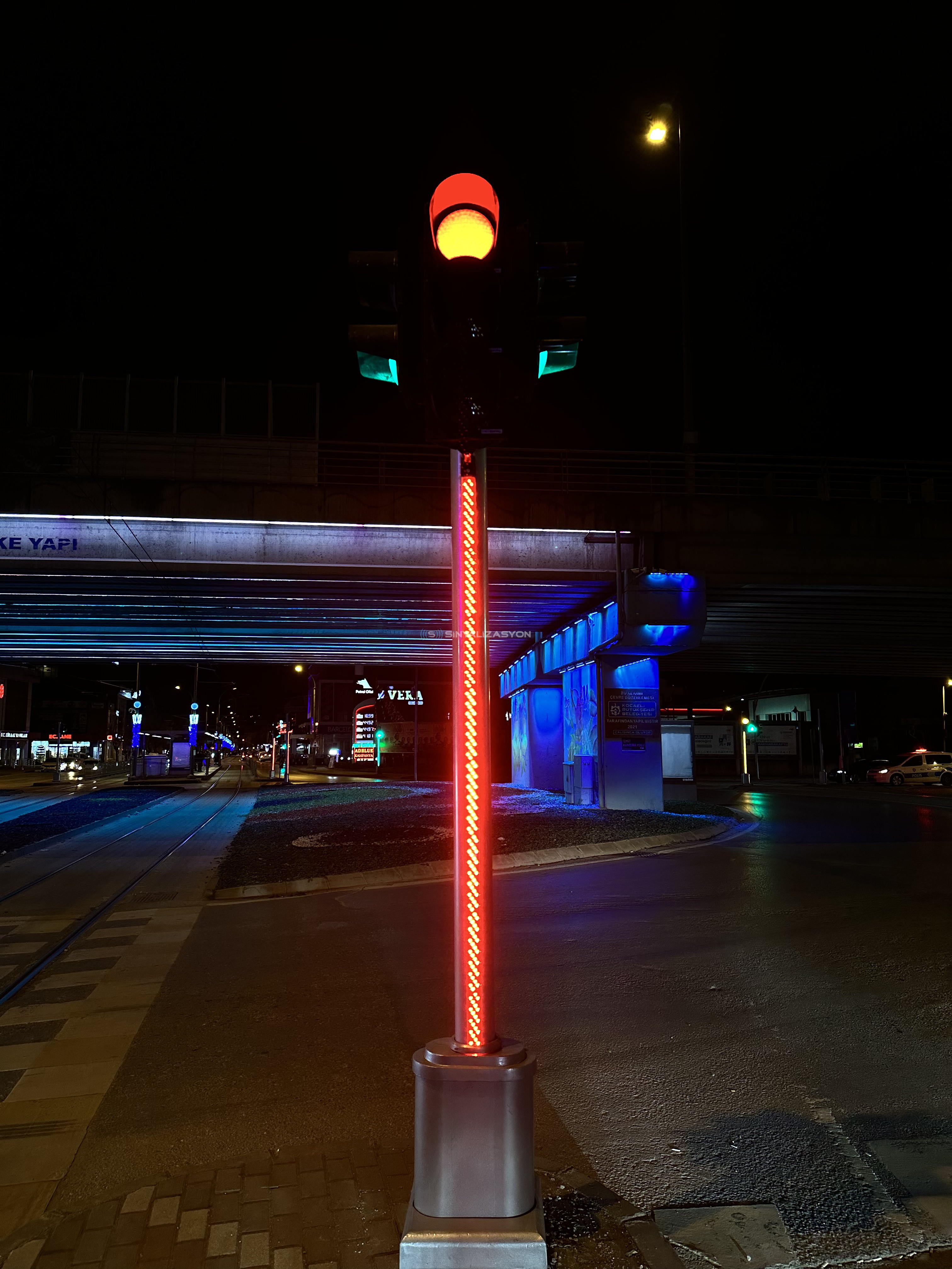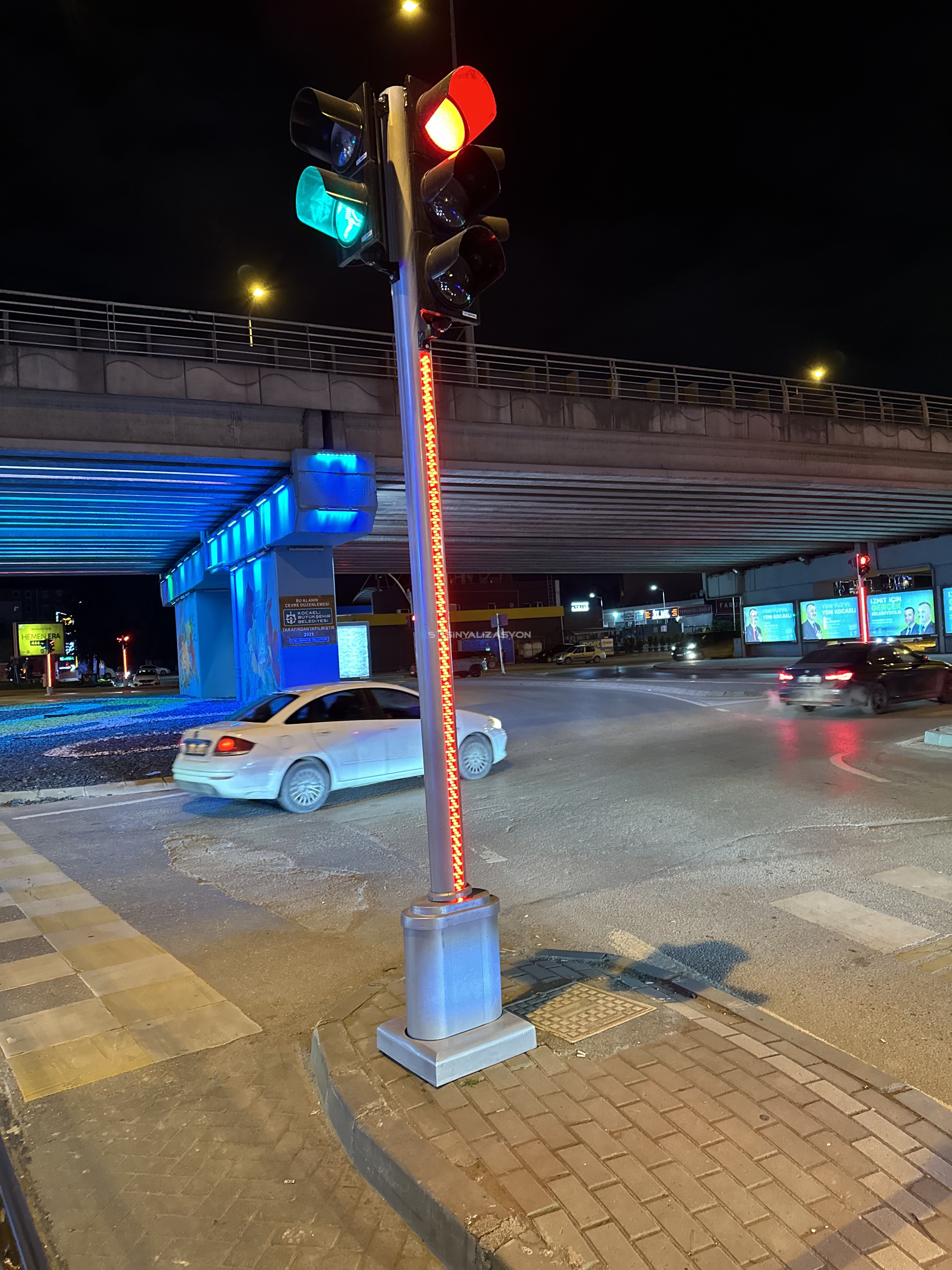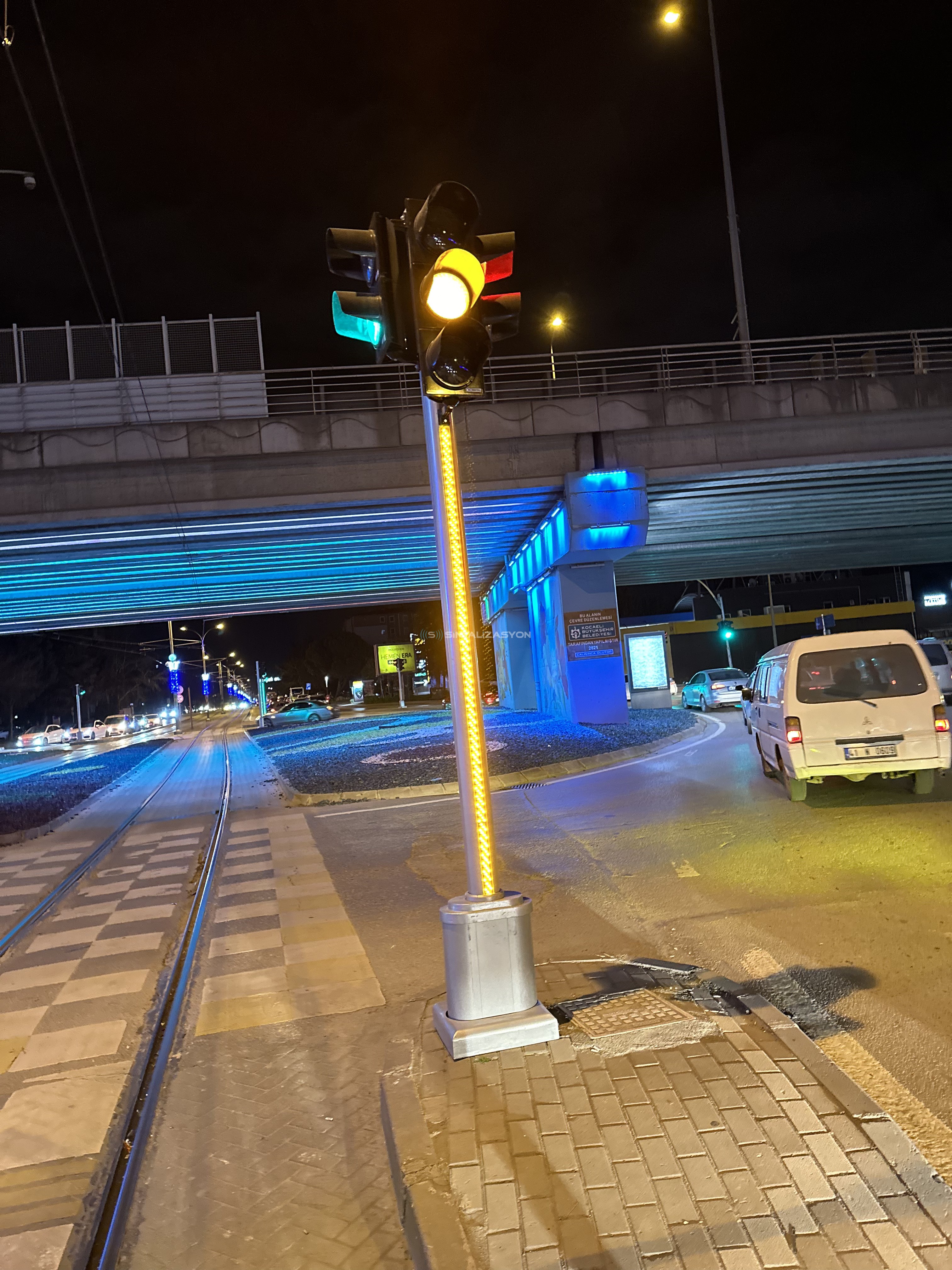 Our pole, which is a product produced by Sinyalizasyon Elektronik to ensure traffic order and pedestrian safety, also gradually dims its light from the GPS location in order not to disturb drivers and does not create light pollution in traffic.