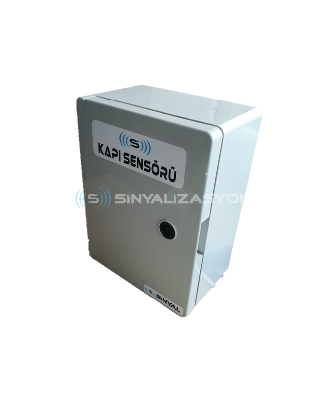 Lorsque la porte est déplacée vers le haut, la porte ferme la vue du capteur et crée l'information que la porte est ouverte dans le système. Les sorties relais du système changent de position à l'ouverture de la porte. Le transmetteur de signal connecté aux sorties relais devient rouge lorsque la porte est ouverte et vert lorsque la porte est fermée.